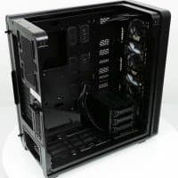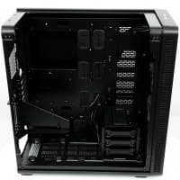 В основной части корпуса, где устанавливается системная плата, много свободного места и почти нет выступающих элементов, если не считать корзину для жестких дисков, так что монтировать комплектующие удобно.