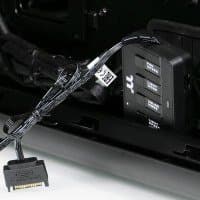 В корпусе установлен контроллер с возможностью подключения трех вентиляторов с колодкой 5×2, располагается он с обратной стороны основания для системной платы и зафиксирован там при помощи двухстороннего скотча. К нему и подключены все комплектные вентиляторы. Стоит отметить, что места для установки вентиляторов не зафиксированы четко, их можно сдвигать на 3-5 см по вертикали, подстраиваясь тем самым под особенности системы охлаждения CPU и GPU. Это достигается за счет того, что отверстия под винты выполнены не в виде привычных круглых дырок, а виде прорезей значительной длины.