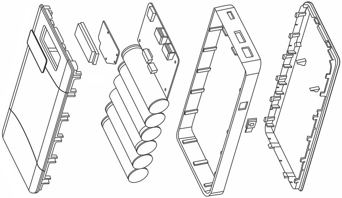 Нам даже предоставили схематическое изображение конструктива пауэрбанка, на котором отчетливо видны шесть цилиндрических аккумуляторов: