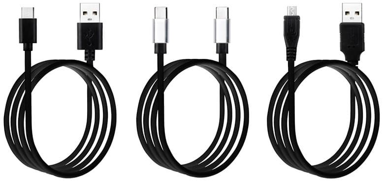 В комплекте целых три кабеля. Длина у них одинаковая — 43 см, а вот разъемы разные, всех необходимых комбинаций: