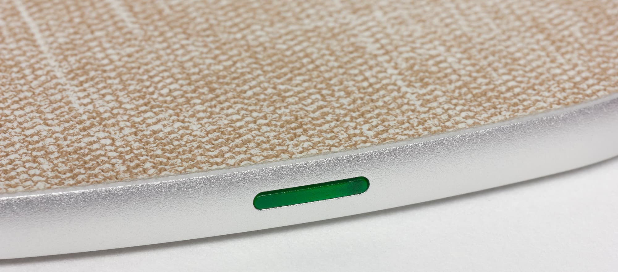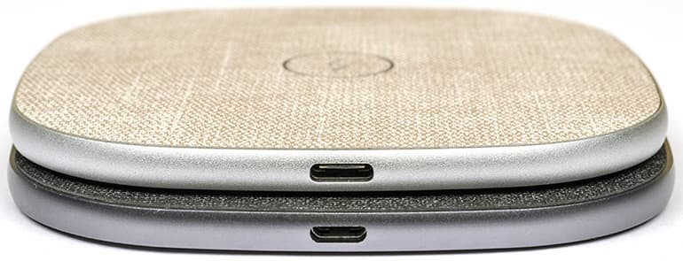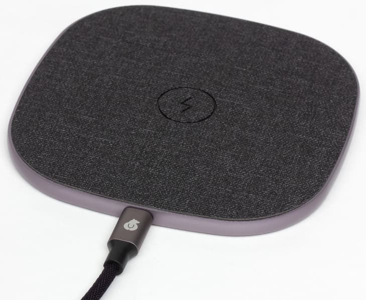Верхняя плоскость покрыта нарочито грубоватой тканью вроде рогожки, фактура которой будет препятствовать скольжению уложенного на нее гаджета при случайном касании — правда, лишь до некоторой степени: движения пальца по экрану могут немного сдвигать смартфон, но ситуация все же получше, чем при обычном пластиковом покрытии (специально попробовали другое ЗУ весьма именитого производителя).