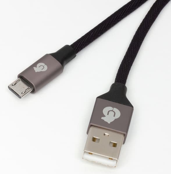 Кабель на вид качественный, в тканевой оплетке черного или бежевого цвета (соответствует цвету самого ЗУ), не очень гибкий и весьма длинный — практически ровно два метра, включая разъемы.