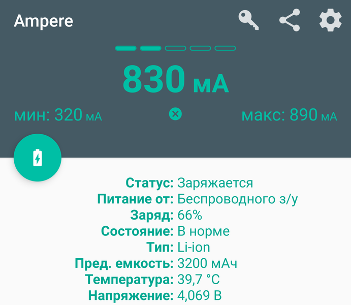 Приложение Ampere показывает ток заряда (или разряда) аккумулятора смартфона и напряжение на нем, причем оценочно и с усреднением. Надо добавлять и потребление самого гаджета, а также учесть отличный от 100% КПД зарядного устройства Qi, поэтому напрямую сравнивать токи (или мощности, умножив ток на соответствующее напряжение) на графике и на скриншотах нельзя. Да и температуры соответствуют показаниям датчика, расположенного внутри смартфона.