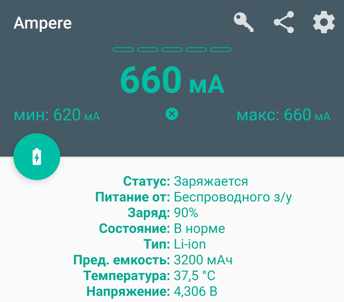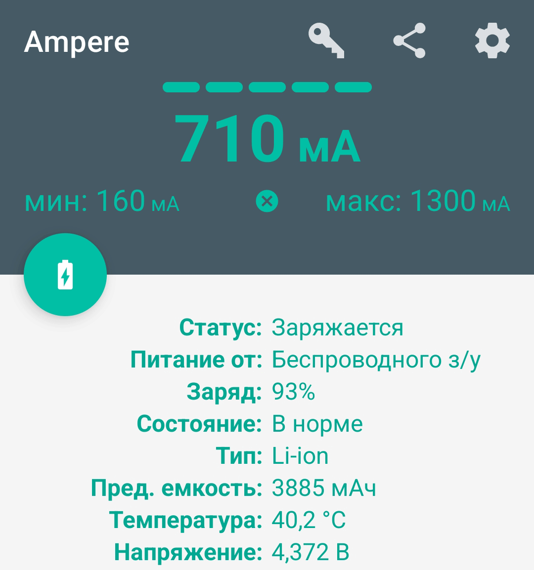 Когда беспроводной заряд закончился, но смартфон еще не снят с BS, потребление от внешнего источника на уровне 110-160 мА (в зависимости от режима смартфона).
