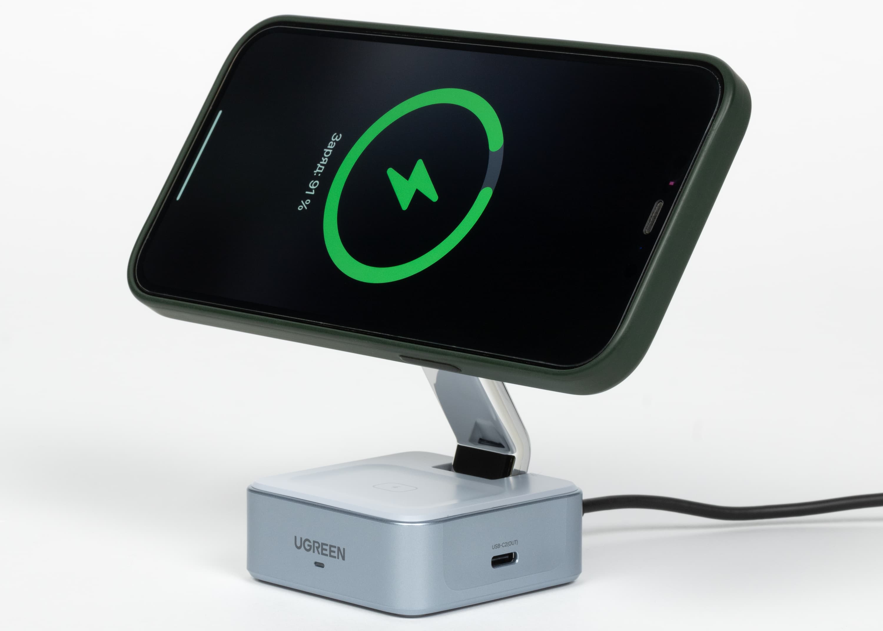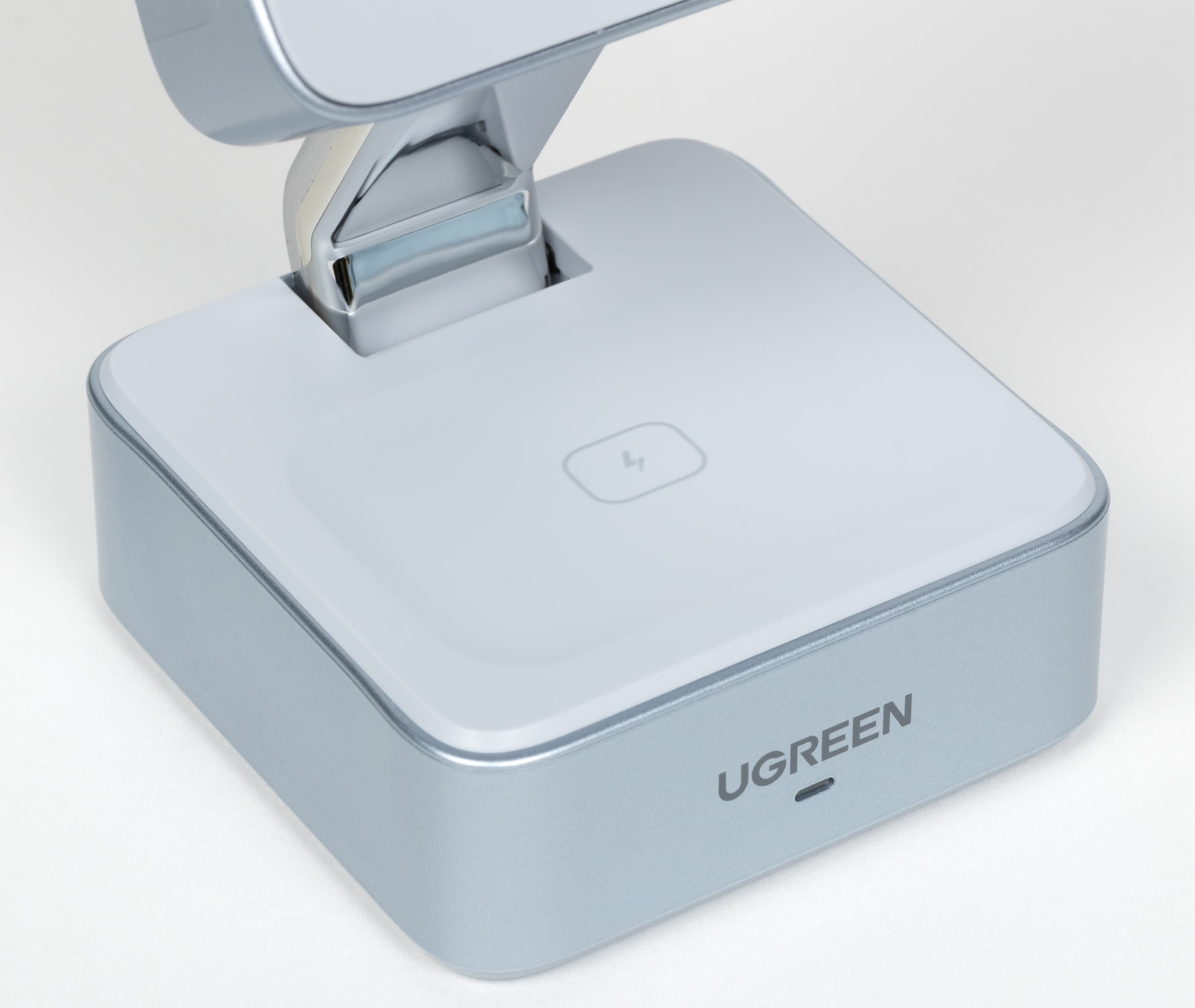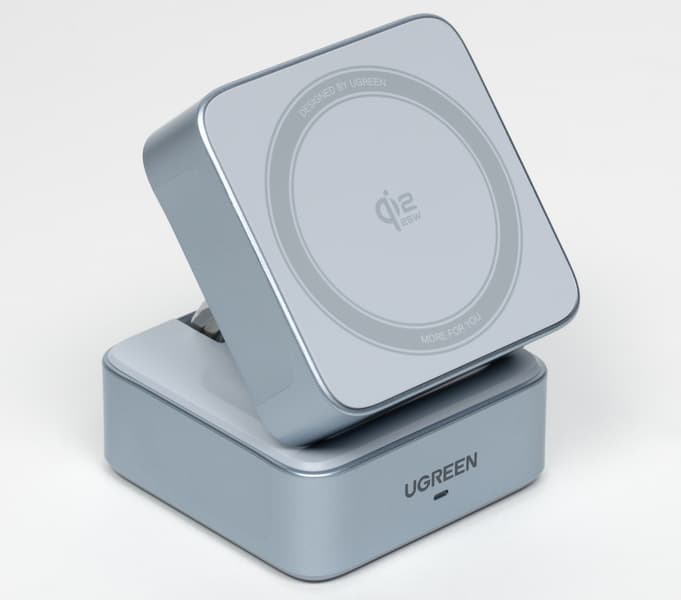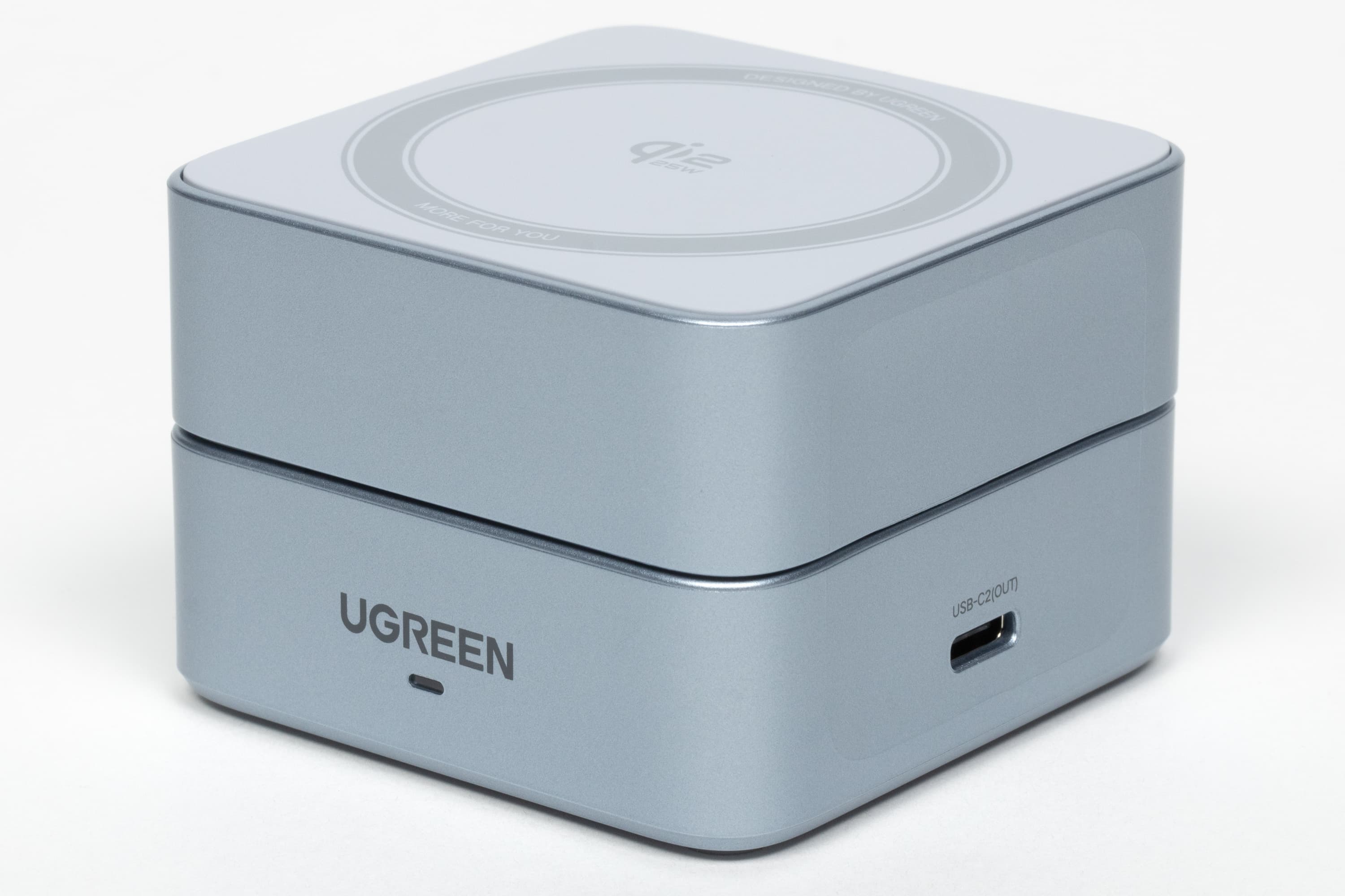 Надо отметить, что оно подключается не к сети переменного тока, а к проводному сетевому ЗУ — например, к уже рассмотренному нами Ugreen Uno RG (X688). Подобную модель Ugreen Uno W709 мы уже рассматривали, она поддерживает лишь более ранний 15-ваттный вариант Qi2.