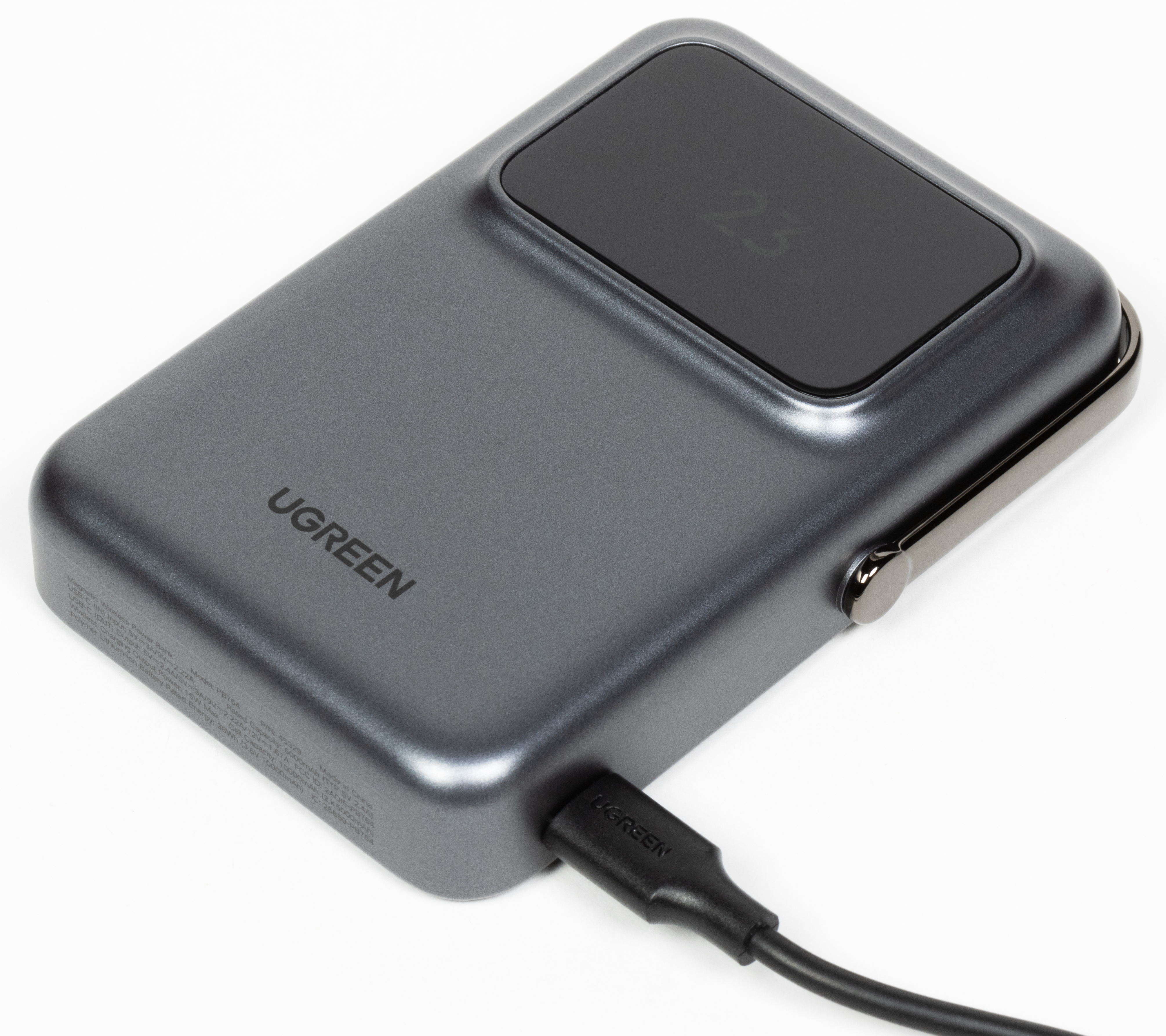Внешне пауэрбанк Ugreen Uno PB764 понравился: аккуратный, компактный и не очень тяжелый. Поворотная опора удобна, особенно при беспроводной зарядке устройств Qi2 с магнитами.
