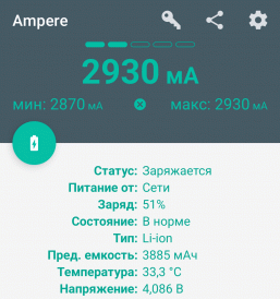 Однако ток продолжал медленно снижаться, а приложение Ampere отображало статус «Заряжается», который сменился на «Заряжена» через 4 часа 21 минуту после начала процесса.