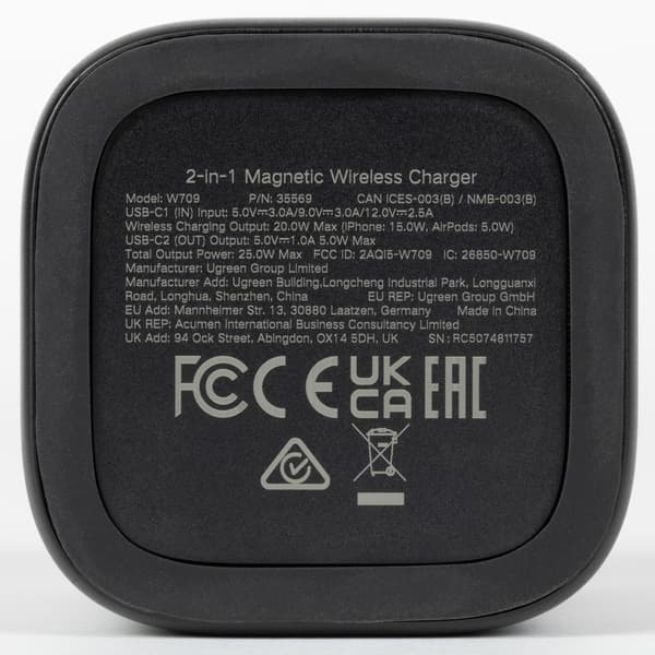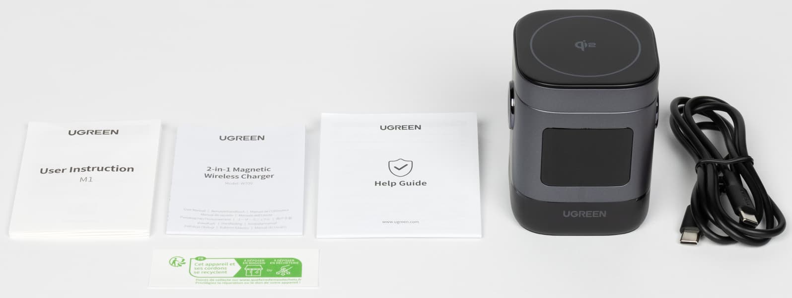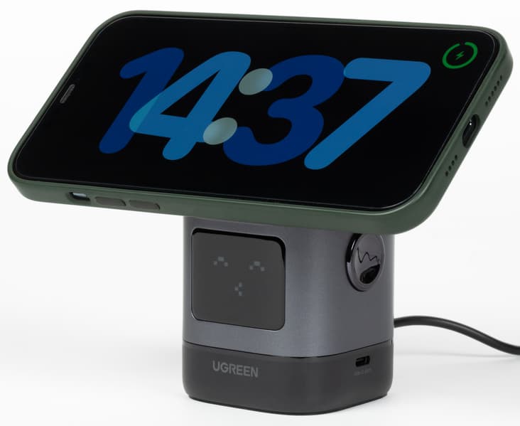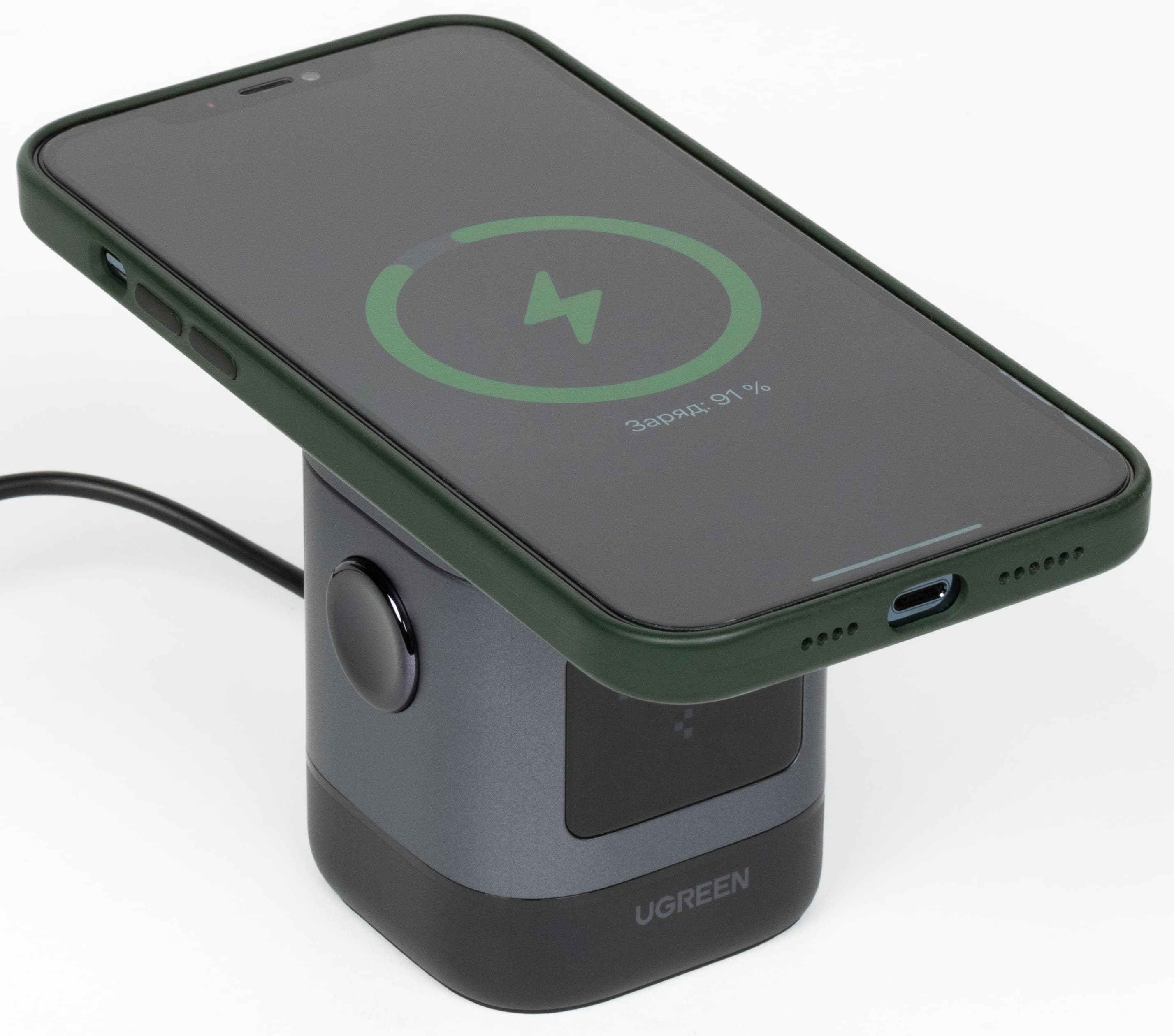 Главное, о чем надо помнить: для использования Ugreen Uno W709 потребуется внешнее сетевое ЗУ — подойдет любое, даже пятивольтовое (кроме совсем уж копеечных «5 В / 1 А»), но желательно всё же с поддержкой 12-вольтовых режимов PD или QC, тогда беспроводной заряд будет идти быстрее.