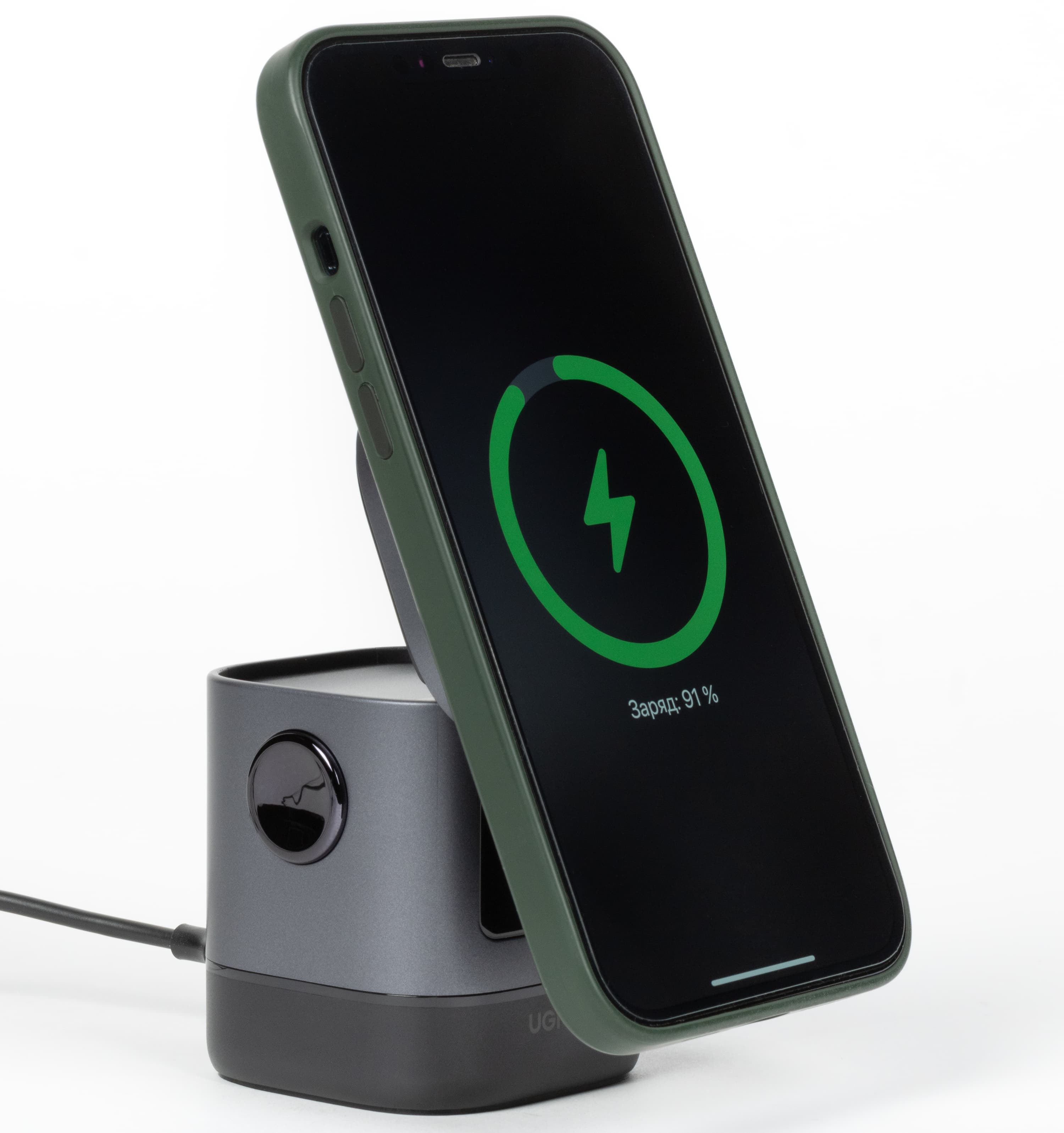 Не будем оценивать этот факт: с одной стороны — в комплектации «из коробки» устройством пользоваться не получится, а с другой — всяких-разных сетевых «зарядок» у любого человека сегодня достаточно. К тому же Ugreen Uno W709 при необходимости можно подключать и к различным пауэрбанкам — подавляющее большинство этих устройств беспроводной заряд не обеспечивают. Конечно, при весе ЗУ в 370 граммов вряд ли можно рекомендовать его для использования в походных условиях, зато на столе оно очень устойчиво даже с удерживаемым магнитами смартфоном.