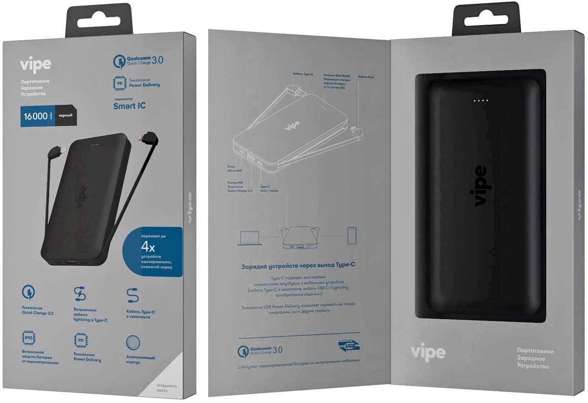 Мы уже знакомились с зарядными устройствами, предлагаемыми этой компанией, а теперь продолжим знакомство и расскажем о пауэрбанках, выпускаемых Vipe в настоящее время.