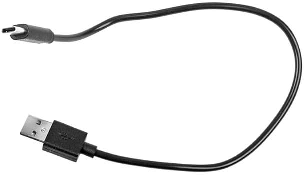 В комплекте имеется кабель длиной 28 см с разъемами USB 2.0 и Type-C. Сечение проводов никак не обозначено, но при такой длине даже с максимально возможными рабочими токами можно не опасаться недопустимо большого падения напряжения на кабеле.