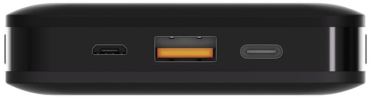 На одном из коротких торцов корпуса находятся все три разъема-female: выход USB type A, вход Micro-USB, а также Type-C, который может быть и входом, и выходом.
