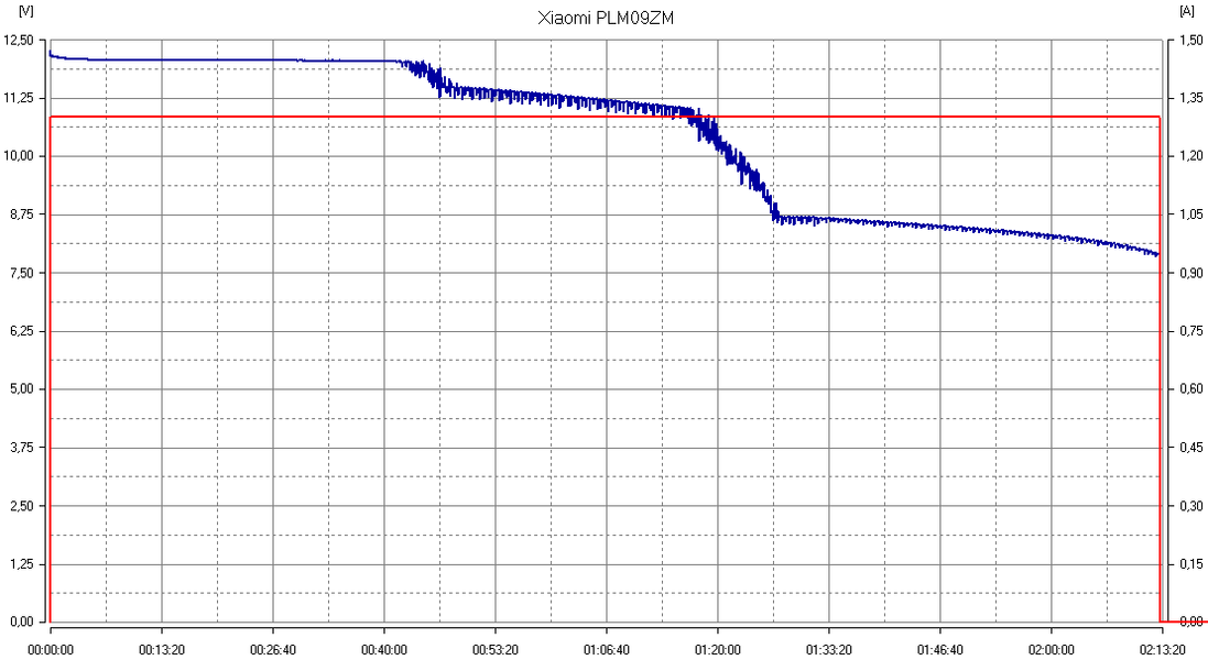| 9 В / 2,3 А | 8,7 В | 8,6 В | 1 час 18 минут | 25,9 Вт·ч | 70% | |