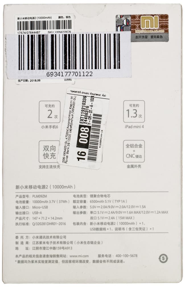 Упаковочные коробки тоже обычные для продукции бренда: белые, из оформительских изысков только изображение пауэрбанка и логотип компании. Надписи в доставшихся нам экземплярах были только на китайском, инструкция тоже, и кое-что важное понять не удалось.