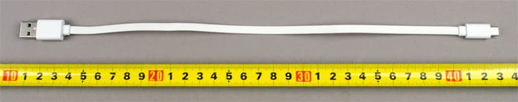 Соответственно отличается и имеющийся в комплекте кабель: на этот раз он плоский, с разъемами USB-A (male) и Micro-USB, без всяких переходников. Длина 27 сантиметров, обозначений для сечения в AWG также нет.