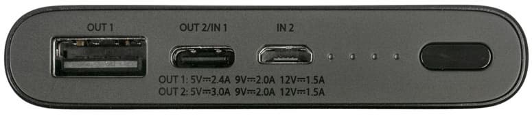 | Разъемы | Выход: 1 × USB-A Вход: 1 × Micro-USB Вход/выход: 1 × Type-C |