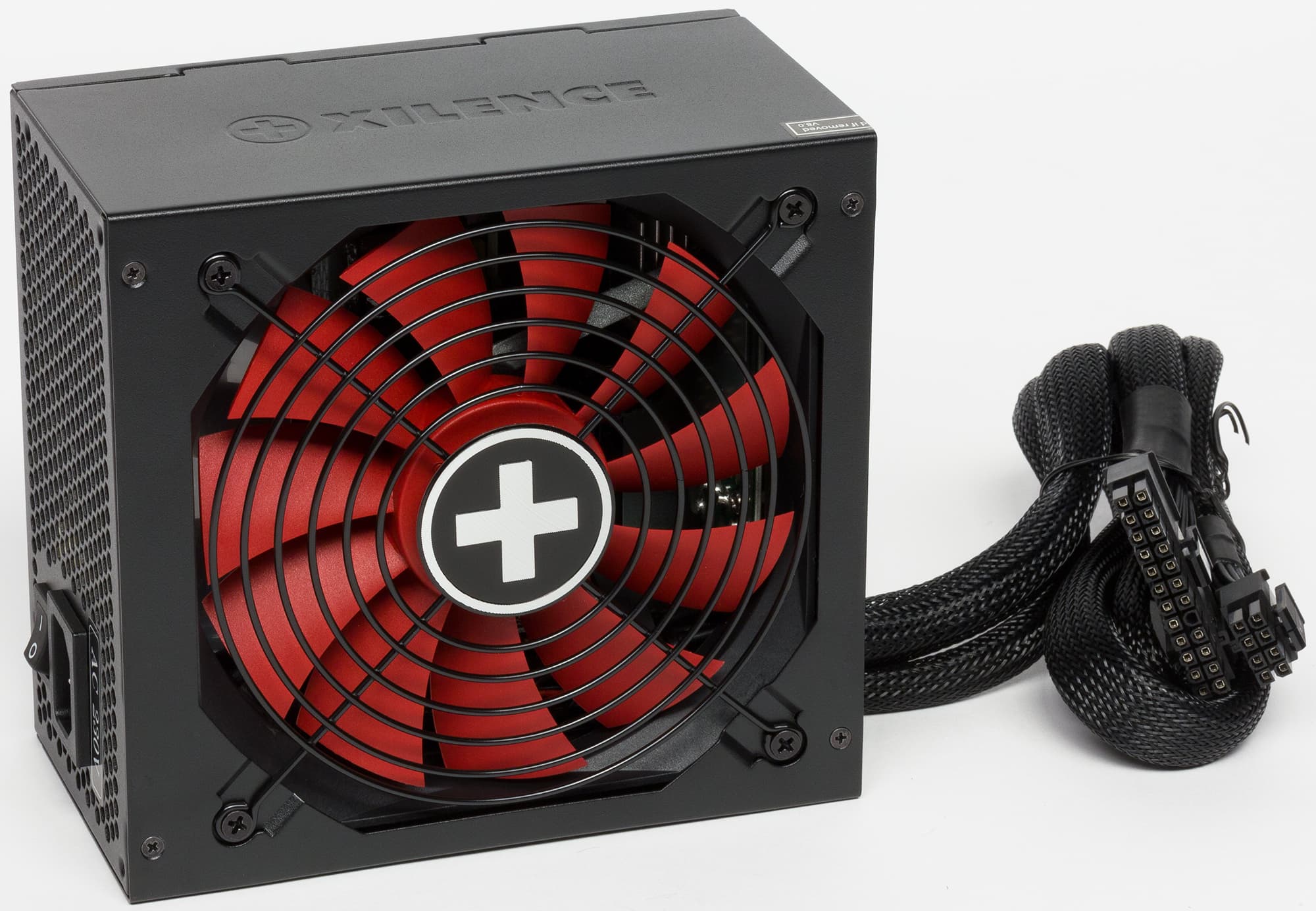 Блок питания выполнен в корпусе черного цвета с матовым покрытием, его длина составляет 160 мм. Под проволочной решеткой установлен вентилятор с красной крыльчаткой — фирменный знак Xilence. Поставляется блок питания в упаковке, предназначенной для розничной продажи, представляющей собой коробку с глянцевой полиграфией в черно-белых тонах.