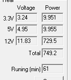 При типичном распределении мощности по каналам отклонения от номинала не превышают 2% по каналам +3.3VDC и +12VDC и 1% по каналу +5VDC. Отметим, что нагрузочная способность канала +3.3VDC в целом является не очень высокой.