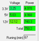 При типичном распределении мощности по каналам отклонения от номинала не превышают 4% по каналу +3.3VDC, 2% по каналу +5VDC и 2% по каналу +12VDC.