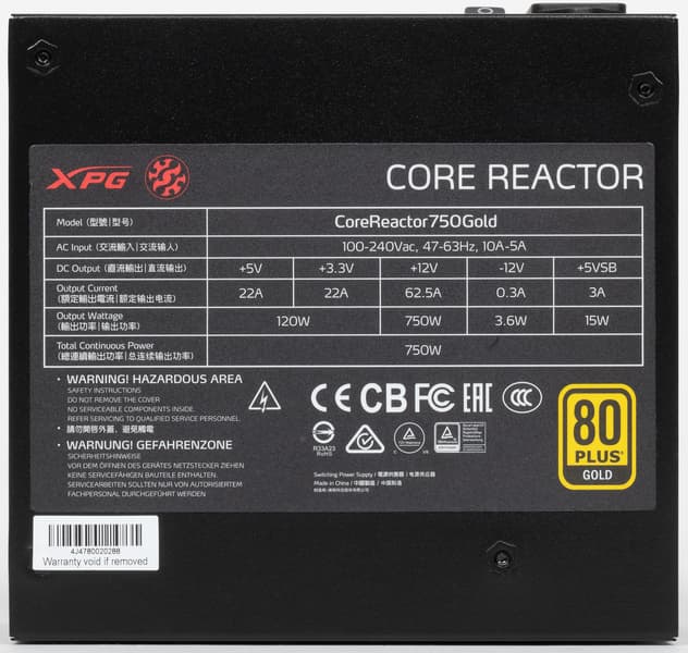 Торговая марка XPG принадлежит компании Adata, поэтому в российской рознице у продуктов XPG часто можно увидеть приставку Adata, так как сам бренд XPG у нас не настолько хорошо известен. Под данной торговой маркой выпускается игровая периферия, корпуса и блоки питания. С одним из корпусов XPG (Defender Pro) мы недавно познакомились, и он произвел достаточно положительное впечатление, а вот с блоками питания этого бренда мы до сих пор не сталкивались. На самом деле, в ассортименте XPG не так много блоков питания, на сайте компании представлены только две серии: Pylon и Core Reactor. Именно представителя последней мы и протестируем сегодня. В данном случае у нас в лаборатории оказался источник питания XPG Core Reactor 750W, имеющий максимальную выходную мощность 750 Вт. Помимо него в данной серии представлены также модели мощностью 650 и 850 Вт. Все модели характеризуются использованием японских конденсаторов, а также наличием сертификата 80Plus Gold. На момент подготовки обзора розничная стоимость XPG Core Reactor 750W составляла около 11 тысяч рублей.