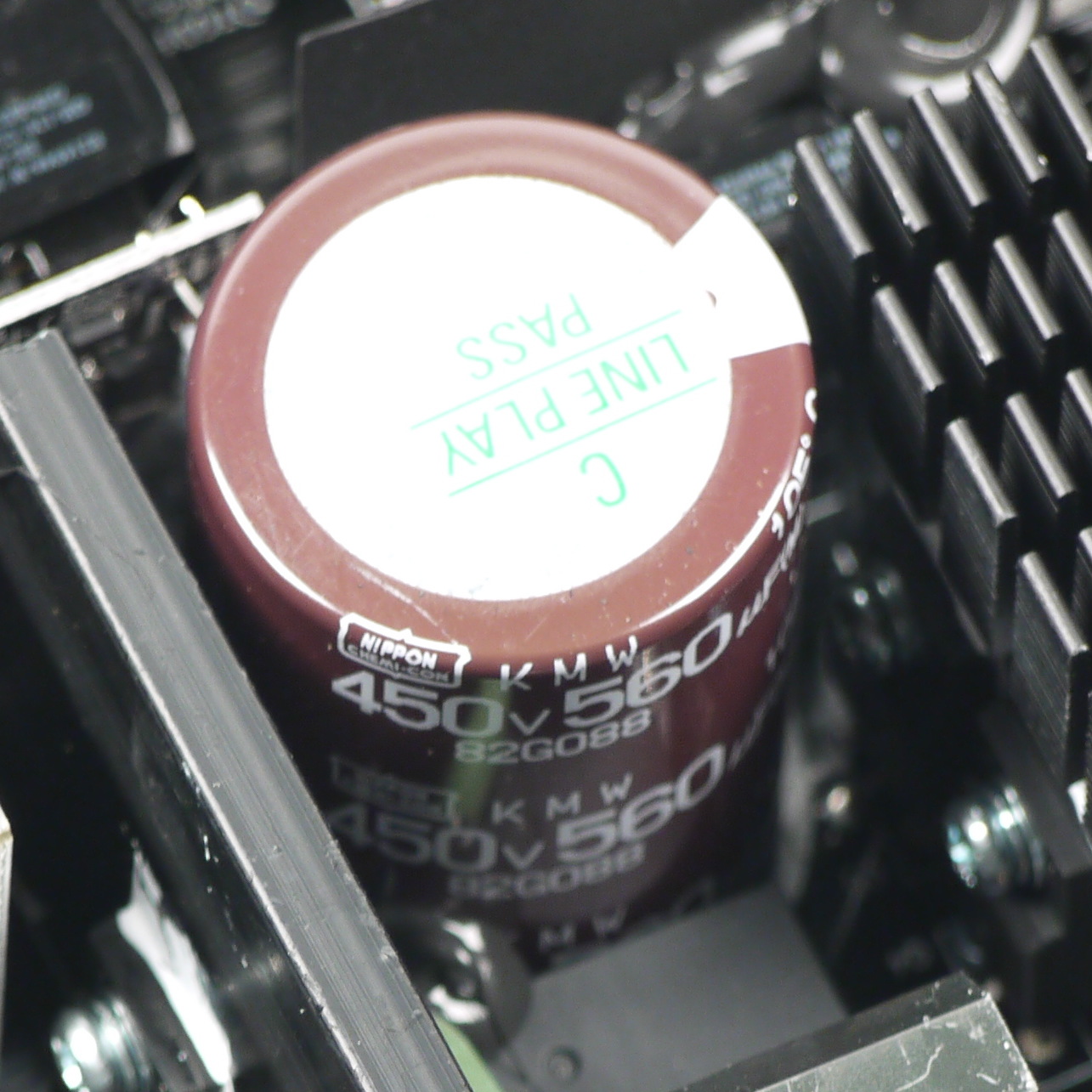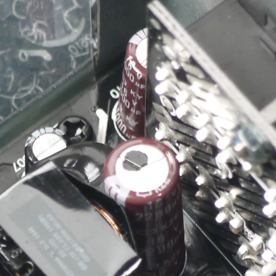 Конденсаторы в блоке питания имеют преимущественно японское происхождение. В основной массе это продукция под торговой маркой Nippon Chemi-Con. Установлено и большое количество полимерных конденсаторов.