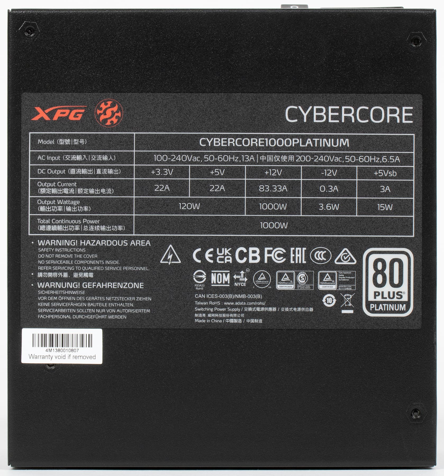 | XPG CyberCore 1000 Platinum | 85,2 |