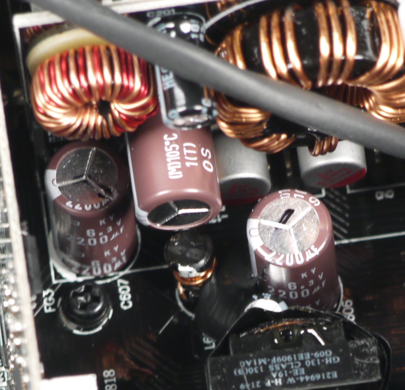 Конденсаторы в блоке питания имеют японское происхождение. В основной массе это продукция под торговыми марками Nippon Chemi-Con и Nichicon. Установлено и большое количество полимерных конденсаторов. Подобная комбинация обычно соответствует устройствам высокого уровня.