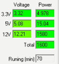 При типичном распределении мощности по каналам отклонения от номинала не превышают 1% по каналу +3.3VDC, 2% по каналу +5VDC и 3% по каналу +12VDC. В последнем случае отклонение измеренного значения напряжения происходит в сторону увеличения значения относительно номинала, что не так критично, как отклонение в сторону уменьшения напряжения. Тем более, что преимущественно отклонение напряжения по каналу +12VDC составляет около 2%, и более того, это значение сознательно завышено до 12,2 В, в чем можно убедиться (и отрегулировать величину отклонения) в фирменном ПО.