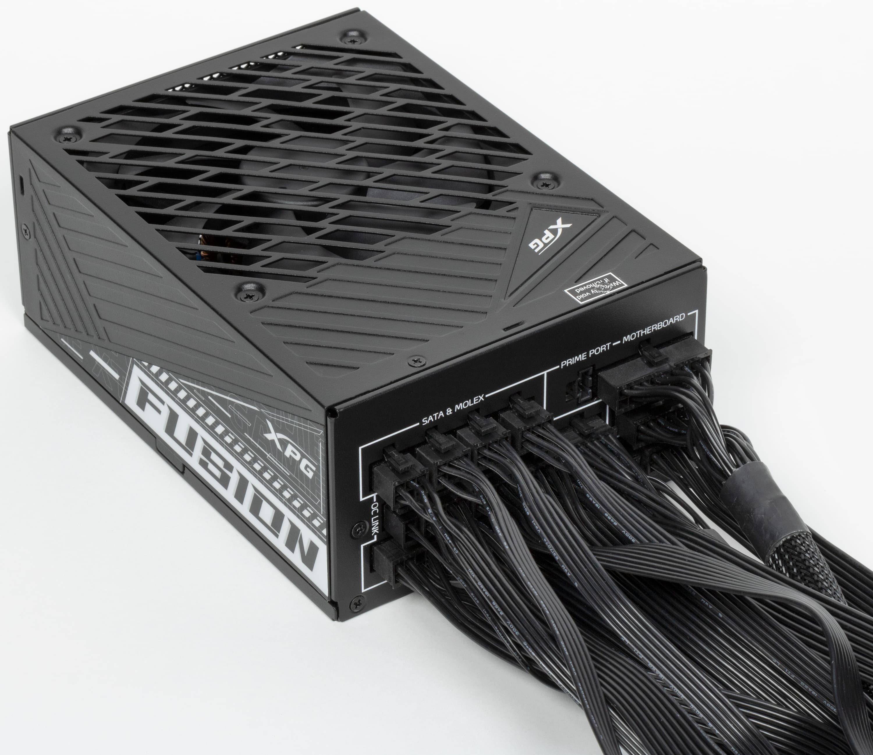 Блок питания XPG Fusion 1600 Titanium является единственной моделью в серии на момент подготовки обзора. Он, как нетрудно догадаться, имеет сертификат 80+ Titanium. Среди практических особенностей этой модели — гибридный режим, то есть возможность работать под нагрузкой с остановленным вентилятором. Причем в данном случае кнопки для отключения гибридного режима на корпусе нет. Однако кнопка и не нужна, поскольку многие параметры работы блока питания можно не только посмотреть, но и изменить в фирменном ПО Prime. Для реализации этой возможности надо подключить БП проприетарным кабелем к внутреннему порту USB на системной плате.
