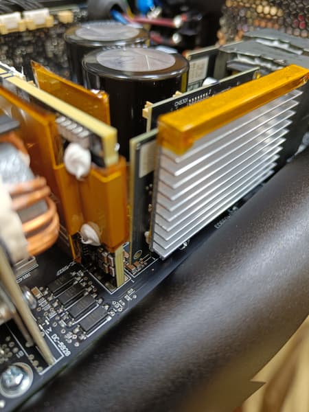 Элементы синхронного выпрямителя также размещены на дочерней плате. Плата синхронного выпрямителя установлена вертикально, что улучшает охлаждение по сравнению с вариантом размещения элементов синхронного выпрямителя на основной плате методом поверхностного монтажа.