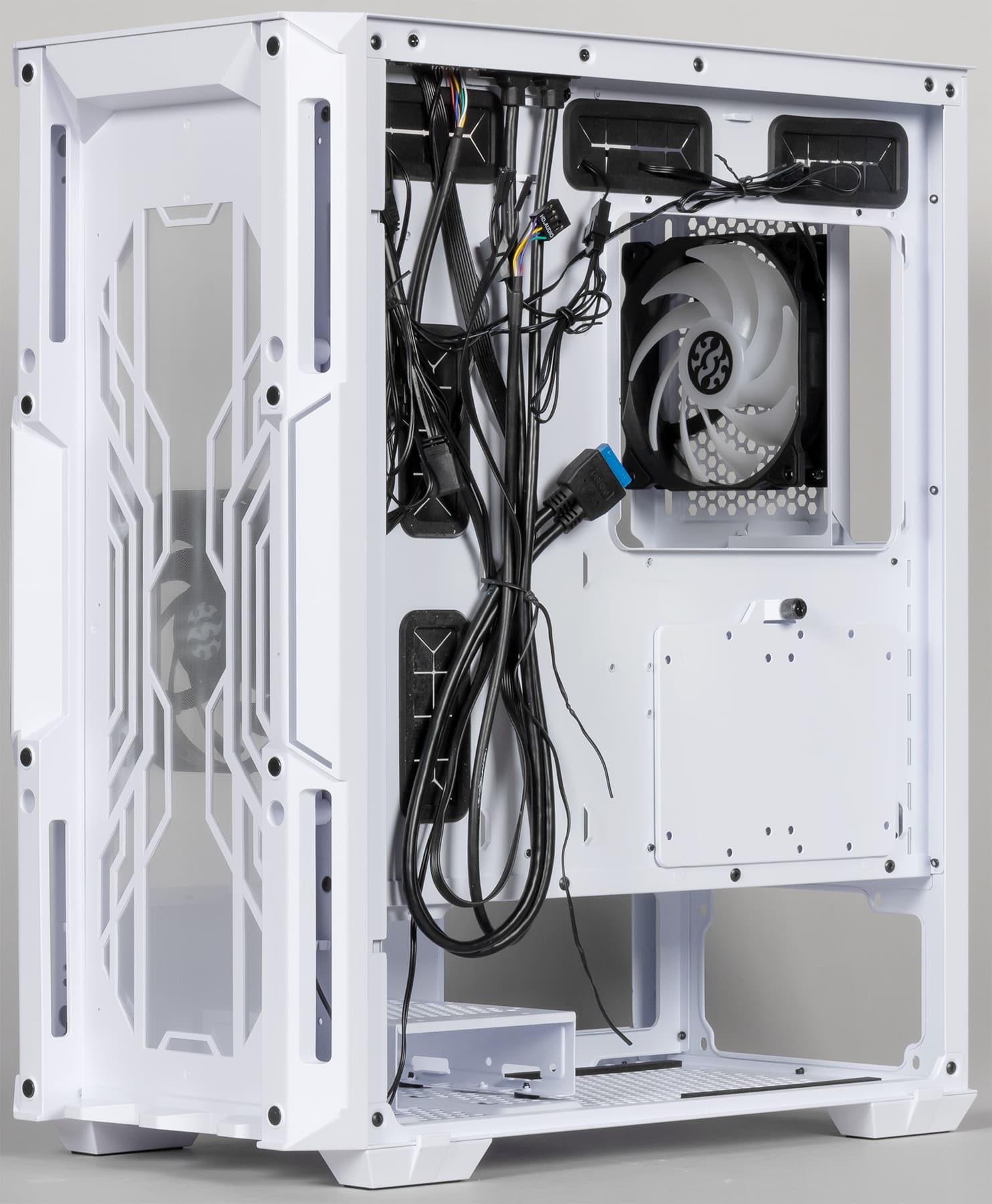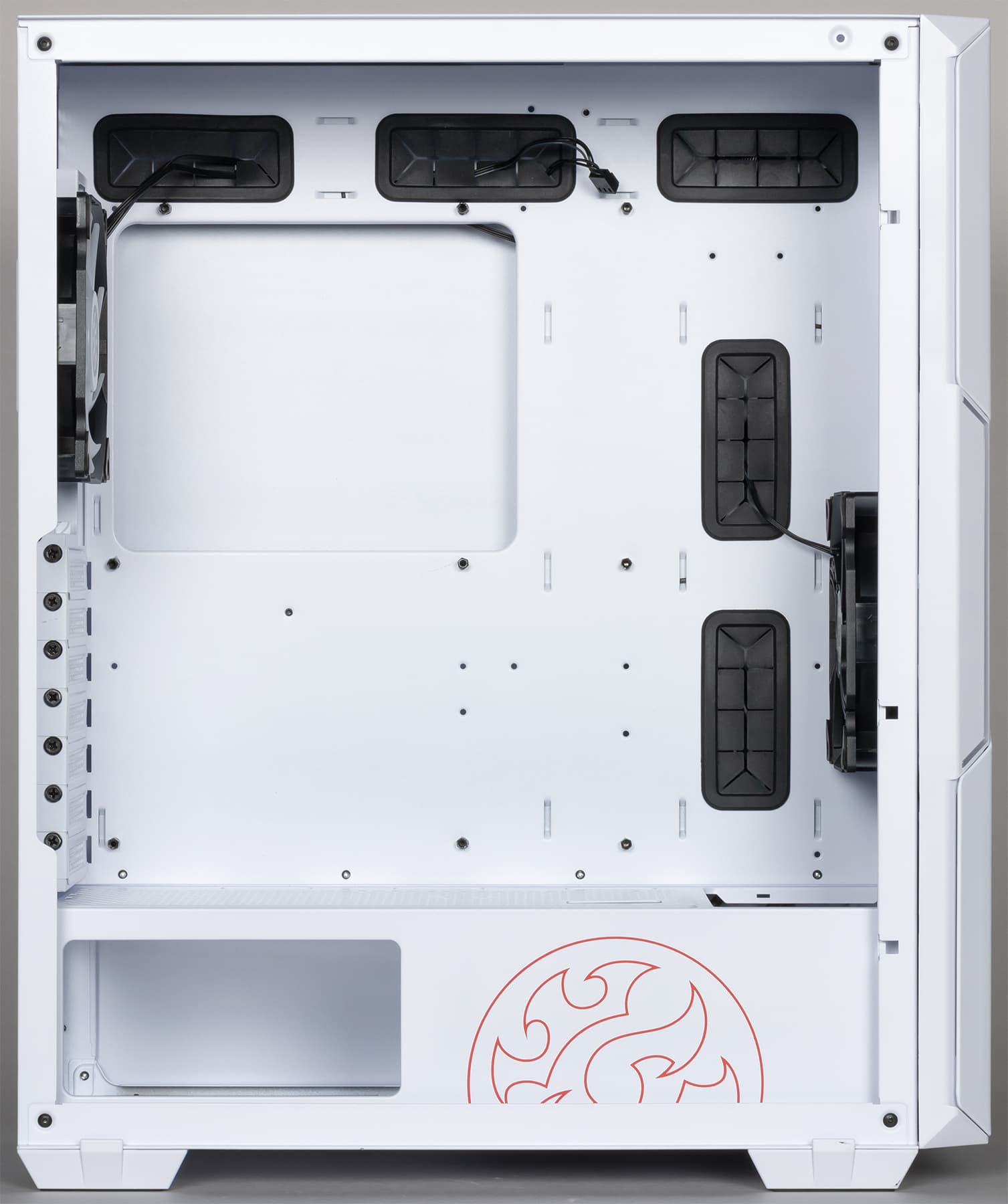В корпусе предусмотрена возможность установки вентиляторов типоразмера 120 и 140 мм. Посадочные места для них имеются спереди, сверху и сзади.