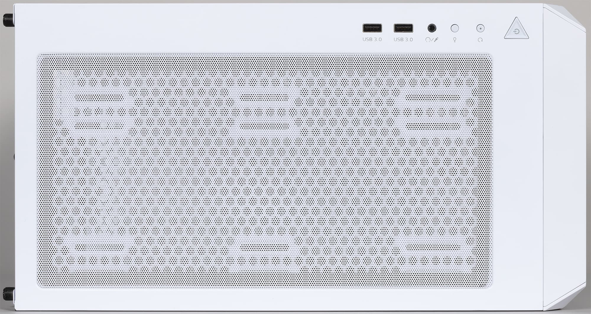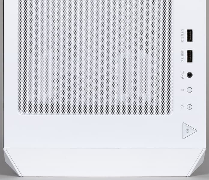 Передняя панель корпуса представляет собой решетку из пересекающихся под углом 60° полос, что придает некоторую свежесть дизайну, хотя сейчас подобное оформление весьма популярно и такие решетки можно встретить далеко не только в корпусах.