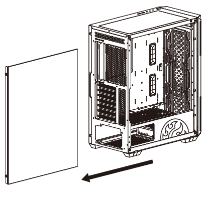 Левая боковая стенка выполнена из закаленного стекла со стальными накладками спереди, сзади и снизу, сверху предусмотрена амортизирующая накладка из вспененного материала.