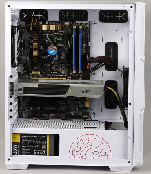 В корпус, согласно данным производителя, можно установить процессорный кулер высотой до 165 мм. Расстояние от основания для системной платы до противоположной стенки составляет около 180 мм.