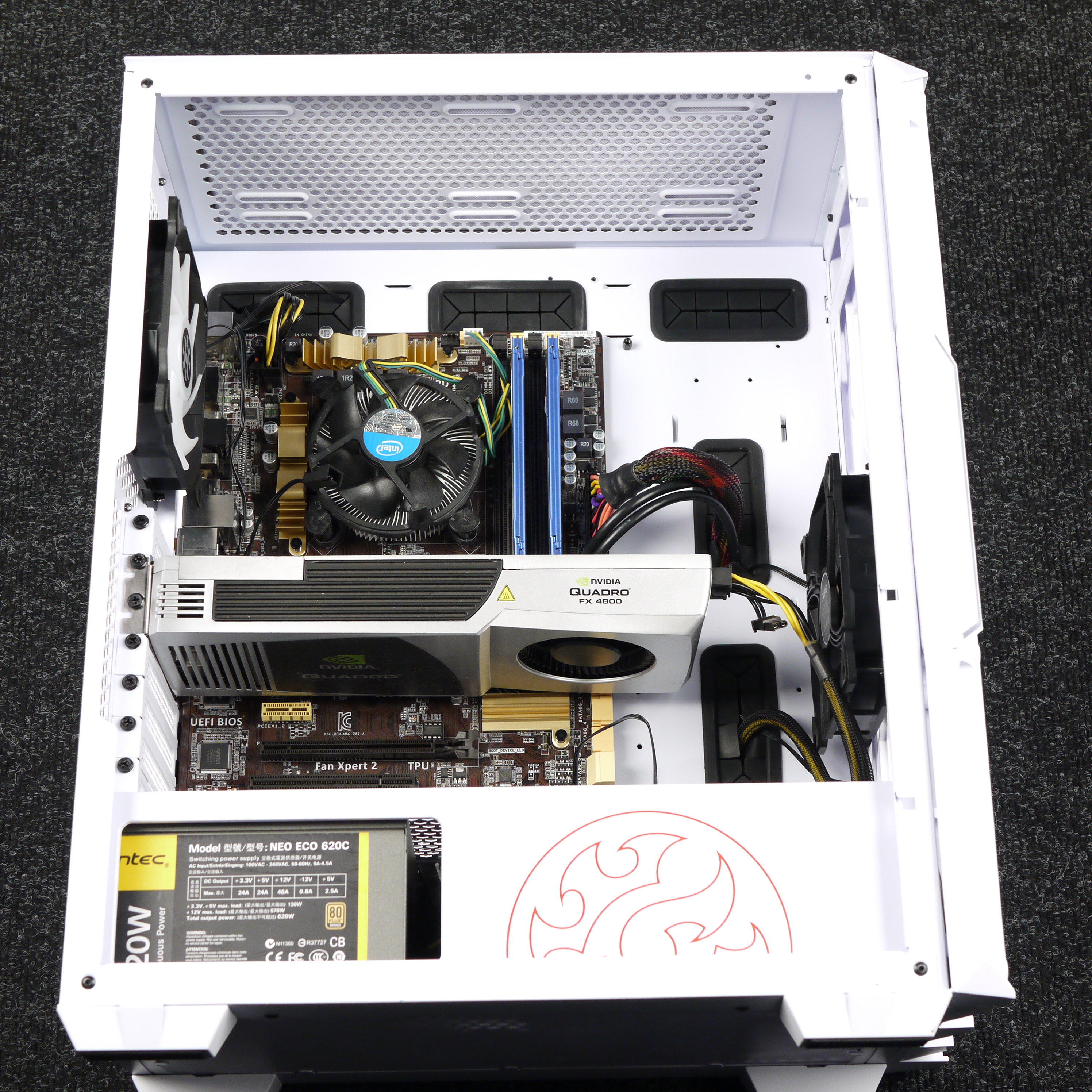 Далее можно установить требуемые платы расширения, например видеокарту, которая может достигать в длину около 35 см, если объем корпуса между системной платой и передней стенкой шасси ничем не занят. Расстояние между бортами шасси с внутренней стороны составляет 338 мм, то есть действительно можно установить достаточно длинную видеокарту. В штатном варианте с установленными вентиляторами расстояние уменьшается до 325 мм.