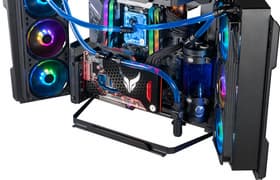Компания Cooler Master представила весьма оригинальный трансформируемый корпус MasterFrame 700 в стиле open frame, то есть без внешних стенок, и с высокой степенью кастомизации. В частности, предусмотрено два варианта его использования: тестовый стенд и презентационный компьютер. В первом случае корпус размещается горизонтально на столе, обеспечивая удобный доступ к компьютерным комплектующим. Второй вариант подразумевает сборку презентационного компьютера или просто оригинального системного блока «с кишками наружу». В этом случае корпус устанавливается уже вертикально или подвешивается при помощи кронштейна VESA 100×100 на стену или на какую-нибудь устойчивую конструкцию.