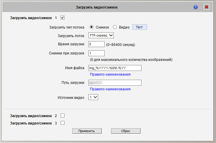 Тут же можно проверить правильность введенных параметров, нажав кнопку Тест. При этом камера должна выполнить настраиваемое действие, в нашем случае — загрузить снимок на FTP-сервер. Если все настроено правильно, то камера это непременно сделает:
