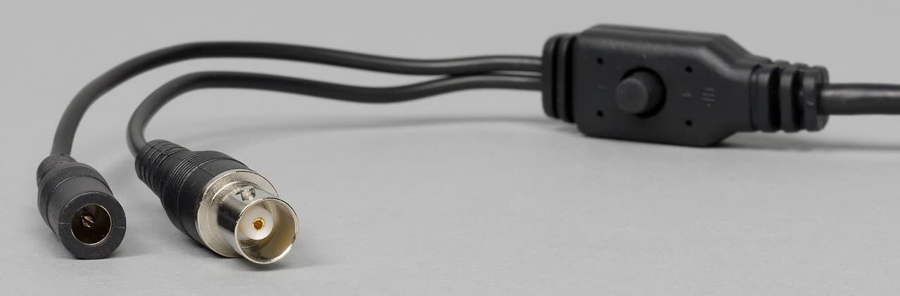 Кабель проходит внутри всей конструкции, что позволяет реализовать его скрытую проводку. На его конце установлен разъем формата BNC для передачи видеосигнала и порт для подключения питания.