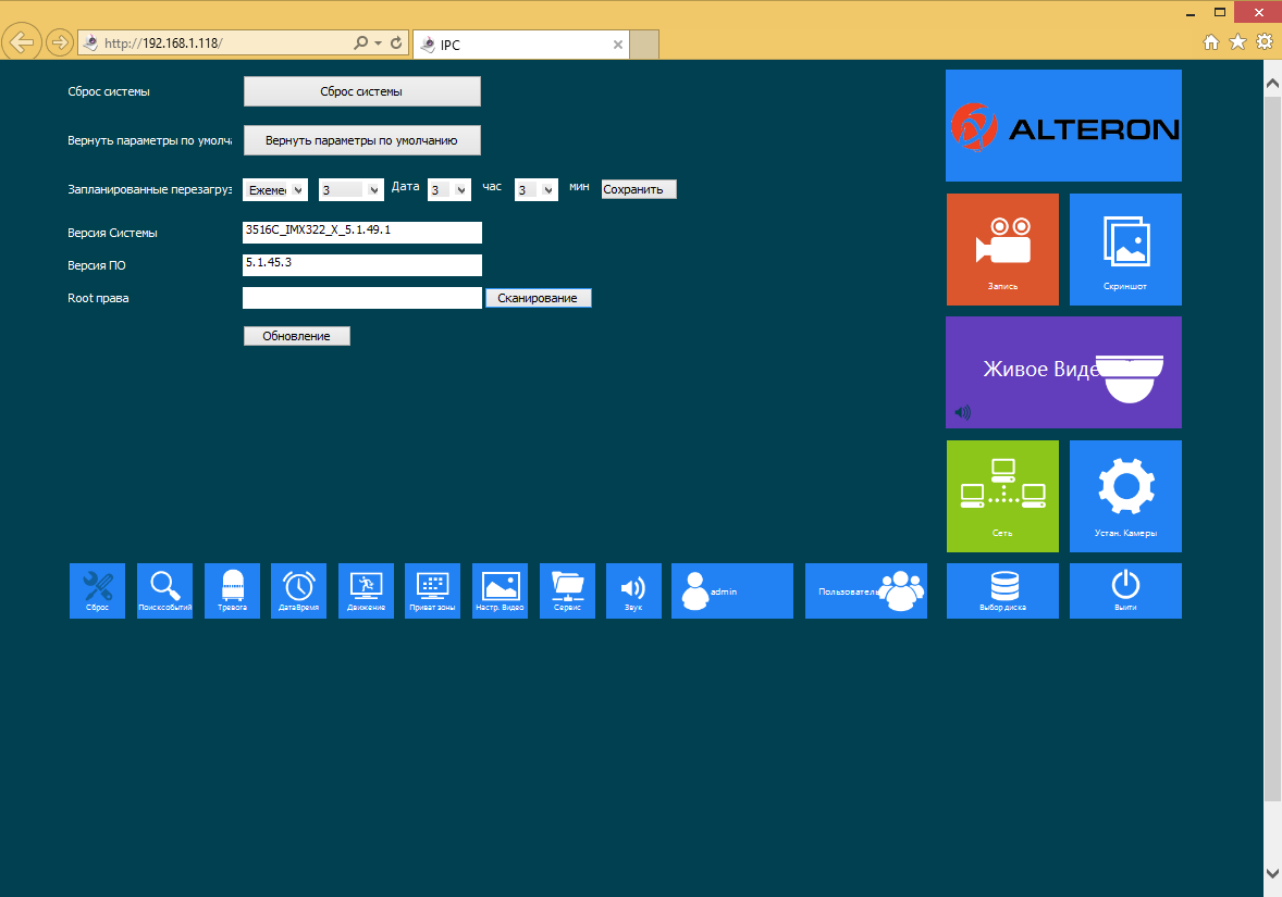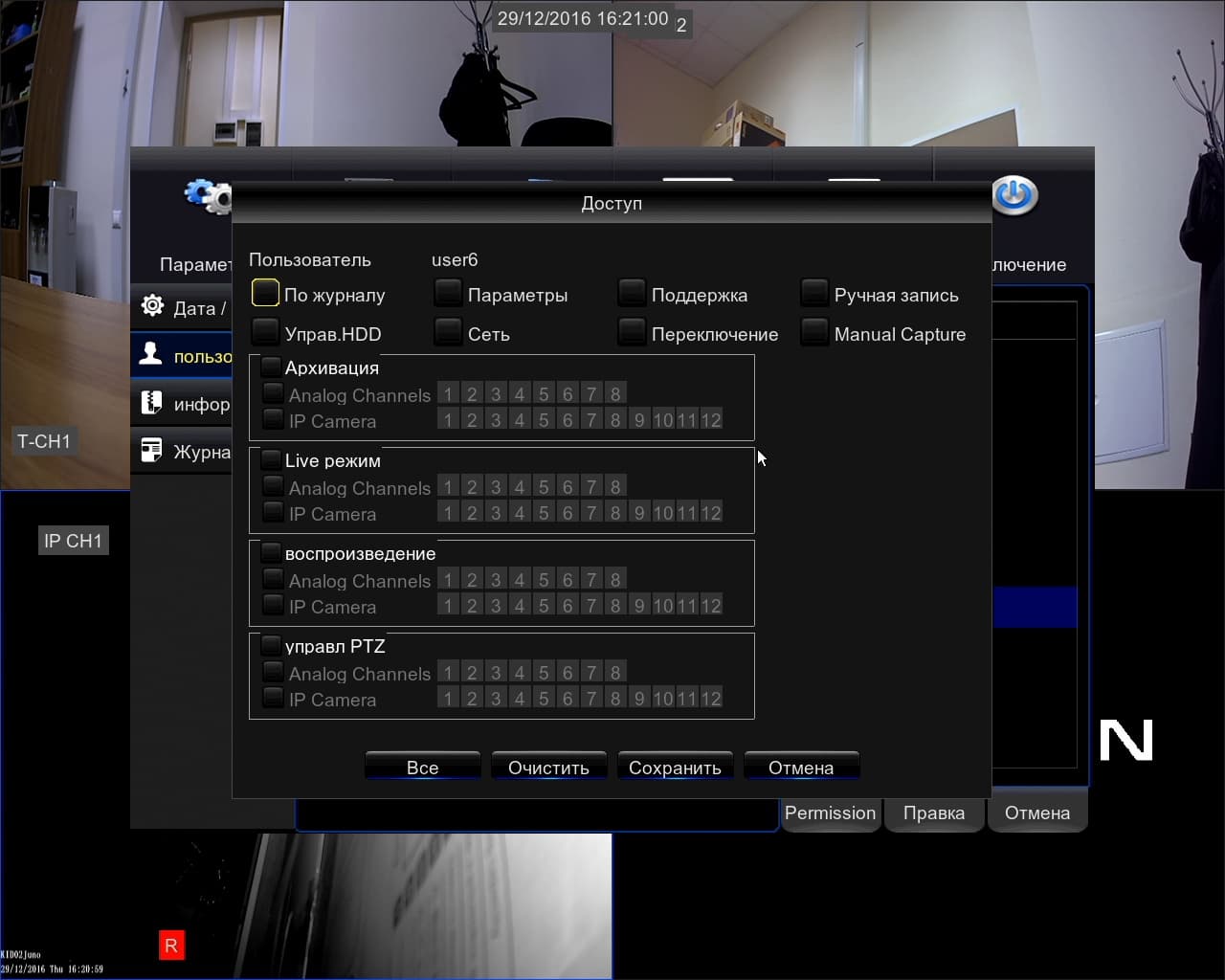 В дальнейшем администратор системы может обратиться к меню для настройки видеорегистратора. Доступ к нему закрыт паролем, а некоторые из прав можно делегировать другим пользователям.