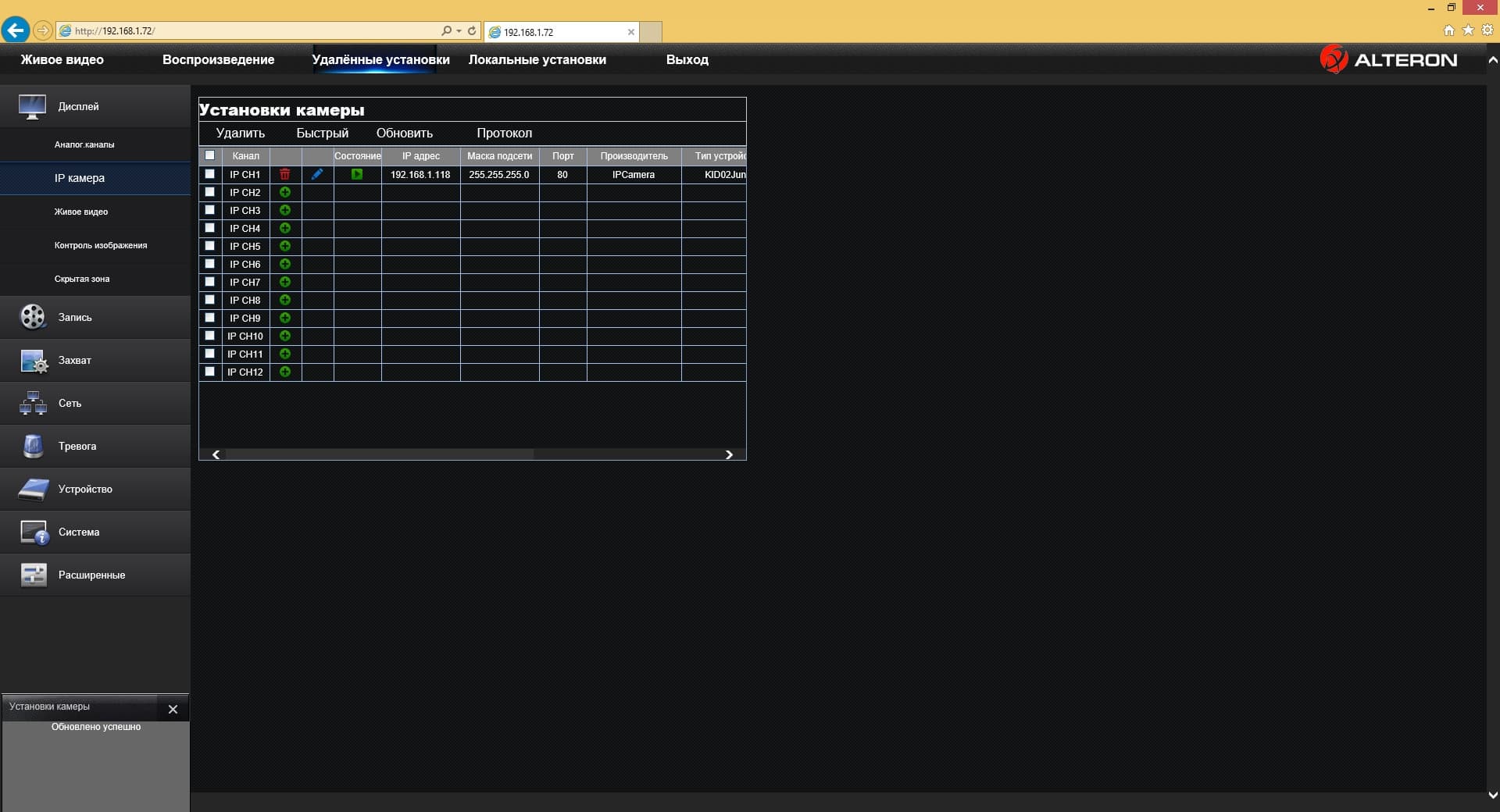 - Камера Alteron KAD20-IR