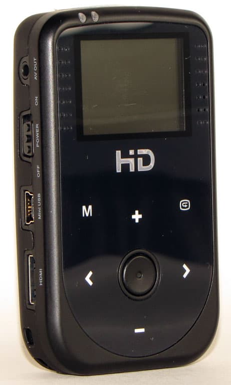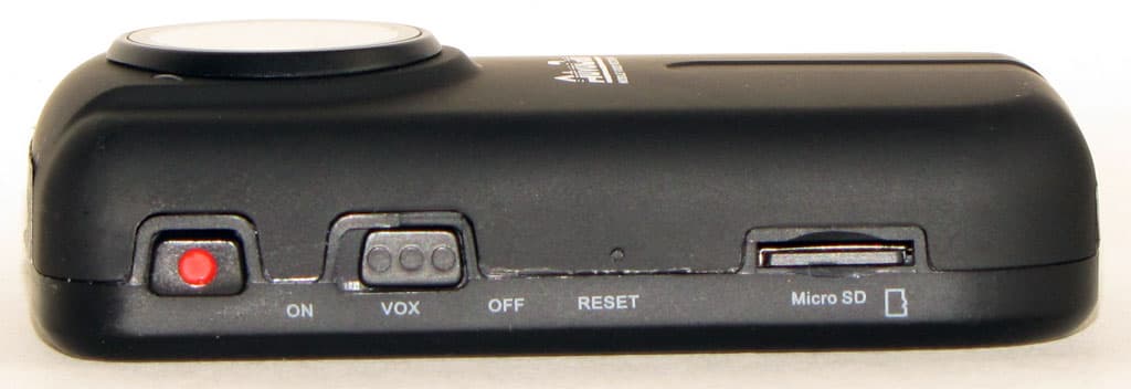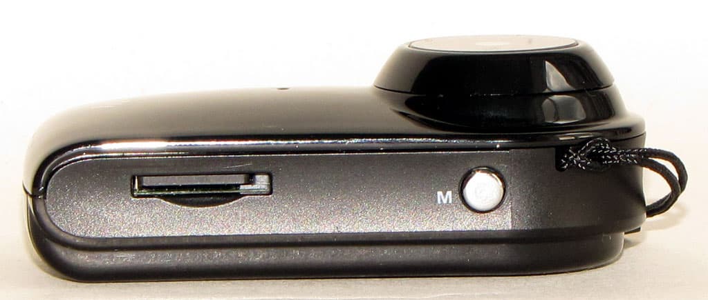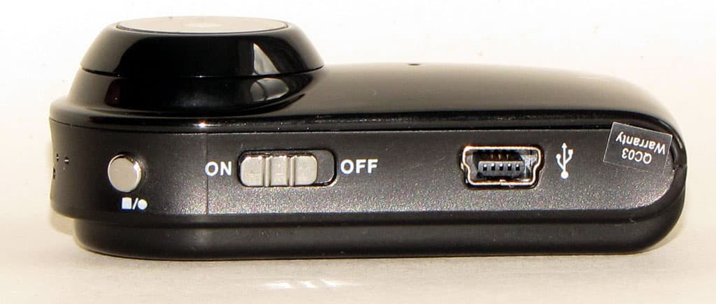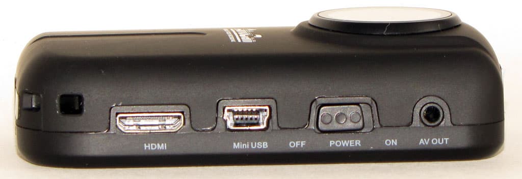 Боковые поверхности устройства выглядят крайне аскетично — в наличии клавиша включения/отключения записи видео (или фотоснимка), клавиша выбора режимов работы, переключатель питания устройства и стандартный разъем mini-USB для подключения к компьютеру. Он же служит и для зарядки аккумуляторной батареи.