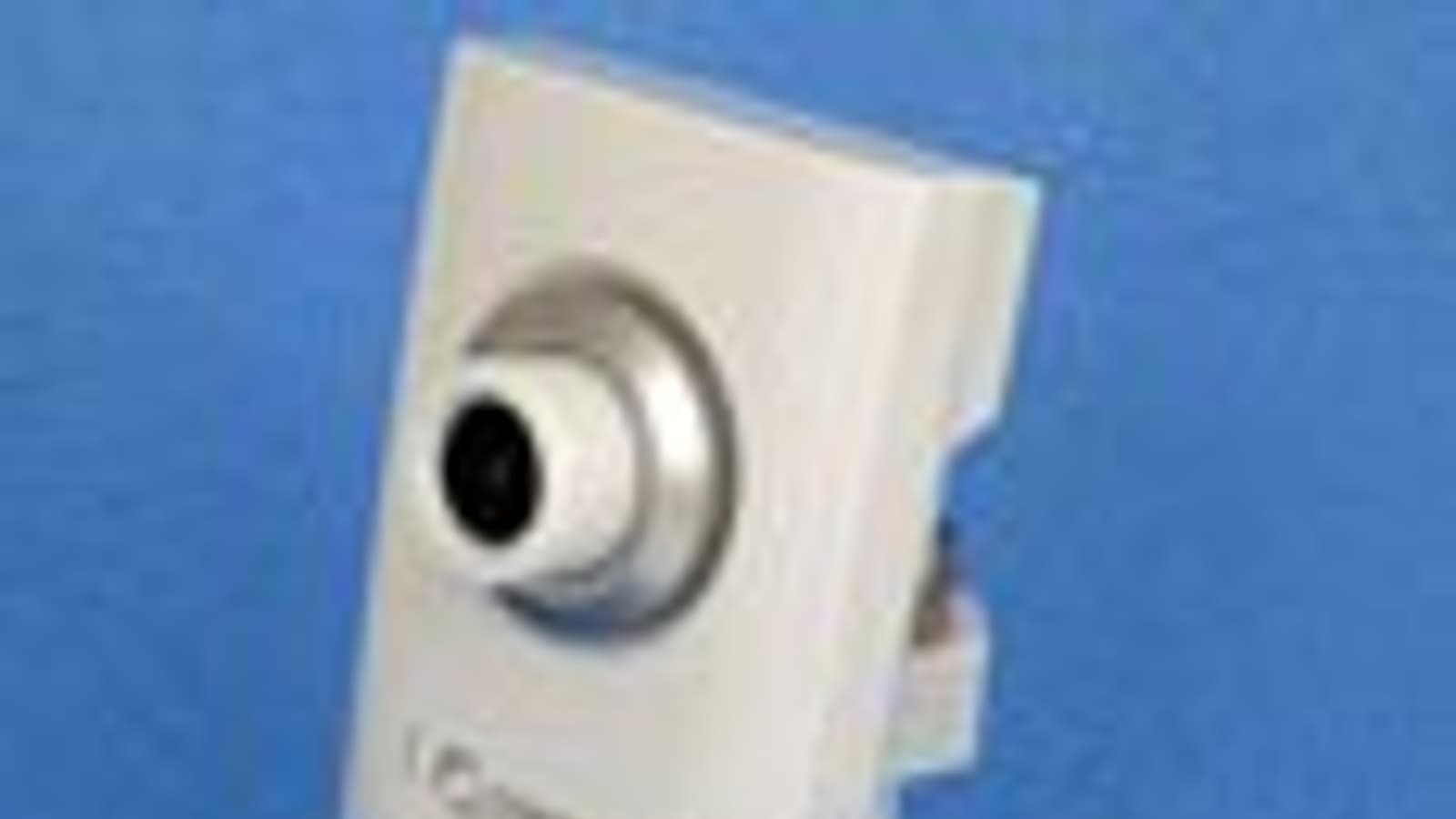 Прямоугольный корпус камеры с небольшим утолщением в верхней его части выполнен из белой пластмассы. Такой белой, что аппарат пришлось фотографировать на цветном фоне. Дизайн лицевой стороны корпуса нехитрый: объектив, окаймлённый серебристым кольцом, да синий индикатор, который расположен пониже и сигнализирует о работе аппарата.
