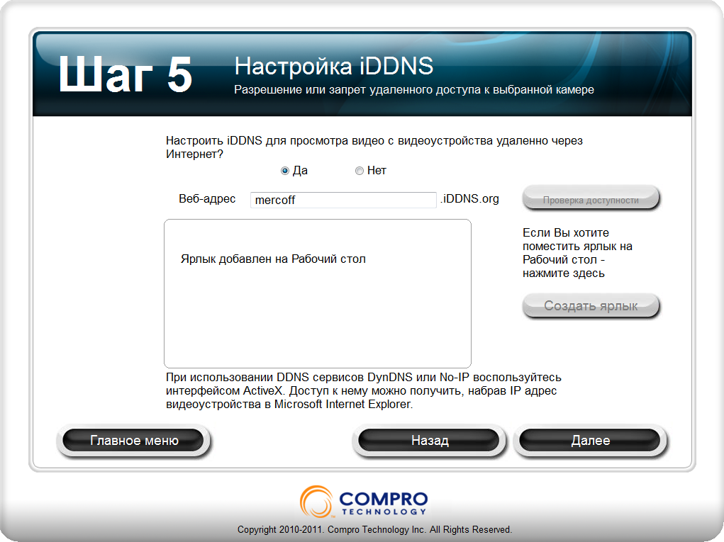 Второй сервис, с именем iDDNS, лишён всех этих потребительских «плюшек», однако с его помощью можно увидеть передаваемое камерой изображение в максимально возможном разрешении. Что характерно — при регистрации в этом сервисе пользователю выдаётся имя, которое впоследствии войдёт в состав веб-адреса странички. Разумеется, имя это не должно быть занятым. Вот как происходит резервация имени: