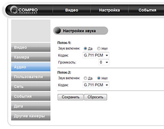 Сжатие | G.711 PCM 64 Кбит/с |