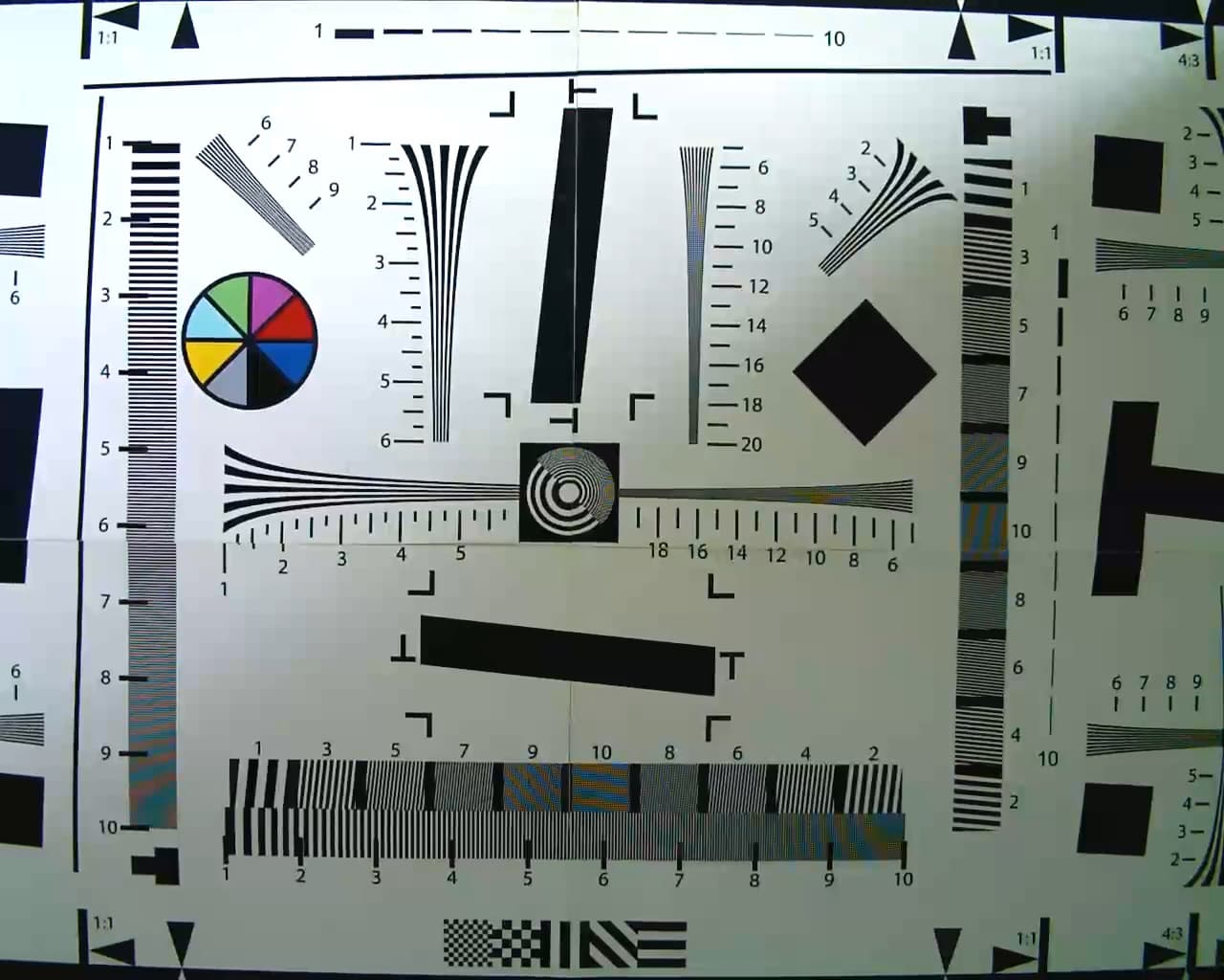 Разрешающая способность любой камеры обычно измеряется посредством съемки тестовой таблицы (миры), при этом существует правило: таблицей нужно закрыть весь кадр. Небольшие отклонения допускаются, однако погрешность не должна превышать разумных пределов. В данном случае такой способ нам подходит, так как объектив камеры не отличается излишней широкоугольностью, а минимальное расстояние фокусировки может варьироваться путем механического изменения фокуса.