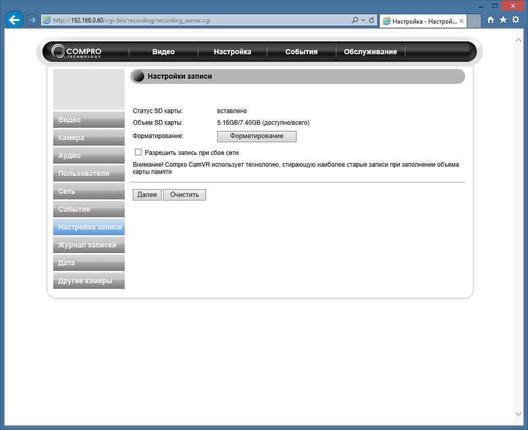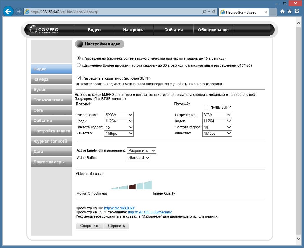 Пройдя настройки камеры, мы попутно изучили и ее функциональность: аппарат способен работать как самостоятельно, так и в составе комплекса видеонаблюдения под управлением сервера, роль которого играет ПК с работающей программой ComproView.