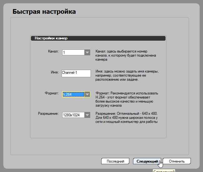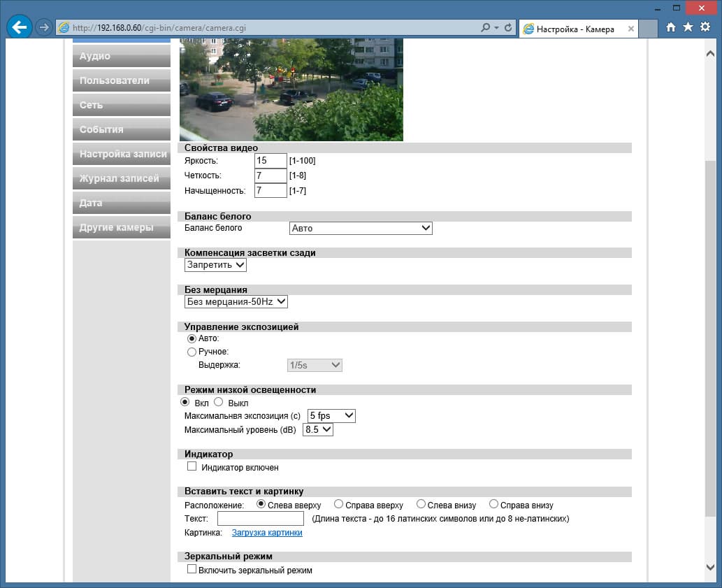 - настройка с помощью прямого подключения к веб-интерфейсу камеры
