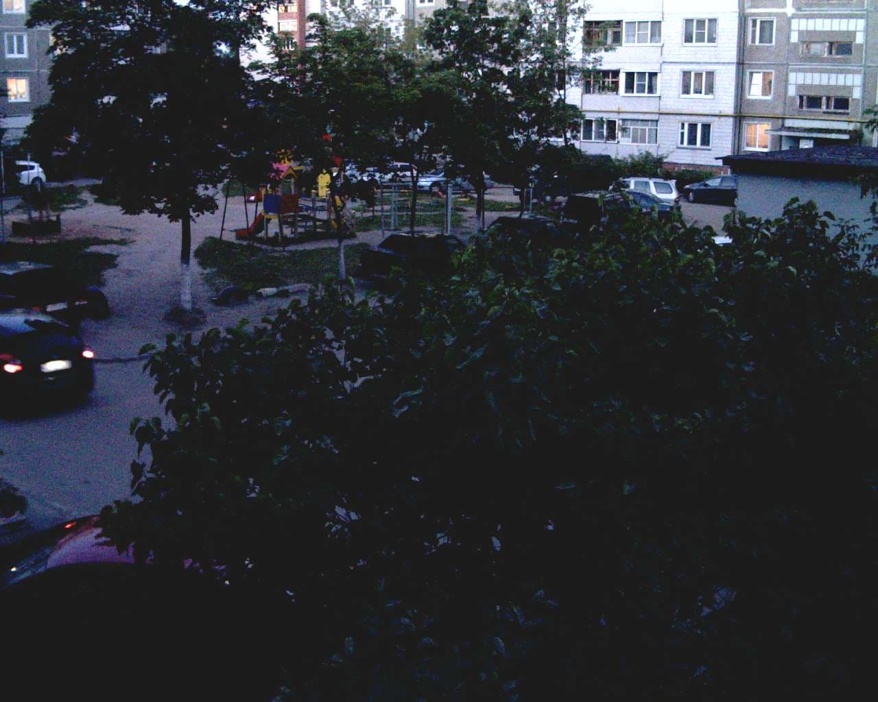 Рассмотрим поведение аппарата в различных условиях освещенности. Чувствительность камеры наблюдения, при отсутствии у нее встроенной подсветки либо системы инфракрасного ночного видения — это важнейшая характеристика, ключевым образом влияющая на применимость устройства в житейских неидеальных ситуациях. На серии стоп-кадров, снятых вечером через некоторые промежутки времени, видно, как вместе со снижением освещенности в кадре появляется цветной шум. Имеющаяся система шумоподавления чуть-чуть снижает его уровень, но при этом теряется детализация. Чувствительность камеры невысока: даже в полутьме, когда глаз все еще распознает объекты, камера оказывается абсолютно слепой. Для самостоятельного изучения стоп-кадров можно скачать их полные версии: