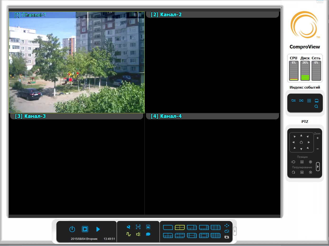 - настройка через приложение ComproView (создание многокамерной системы видеонаблюдения с центральным сервером, роль которого играет ПК)