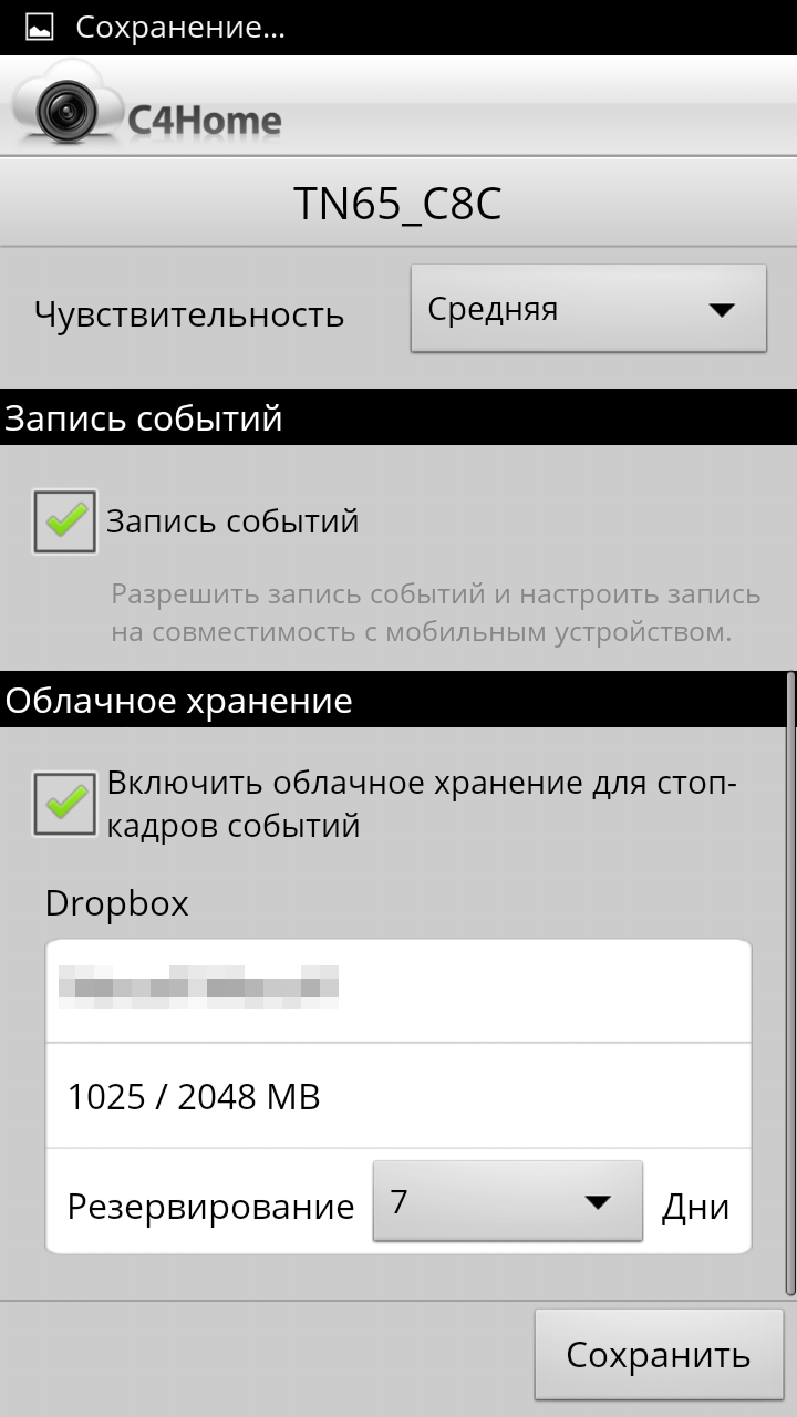 Особое внимание обратим на наличие в рассмотренном приложении настроек хранилища DropBox. Нигде более вы этих настроек не найдете. Просто потому, что это настройки не камеры, а по сути облачного сервиса C4Home, или учетной записи, к которой привязана камера. Таким образом, данный способ подключения и настройки — назовем его «мобильным» — подразумевает соответствующее использование камеры, сугубо одиночное, в личных целях, для удаленного наблюдения за чем-либо посредством мобильных устройств через сети мобильной связи и Wi-Fi.